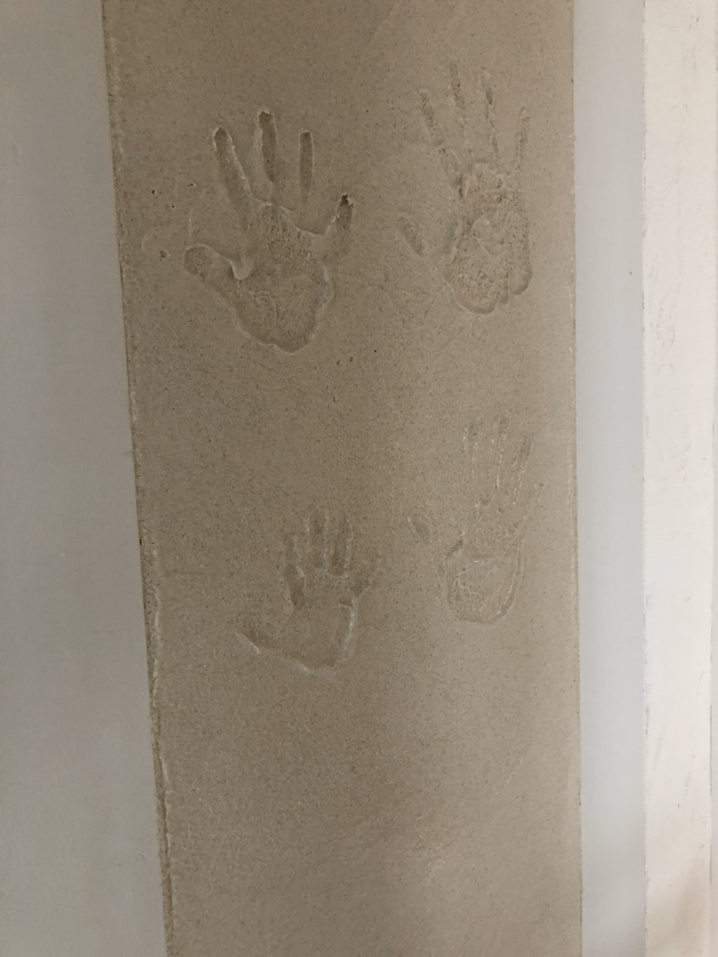 塗り壁にご家族の手形を残したものです。