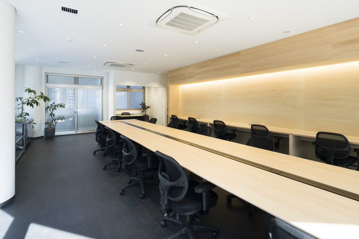 こちらの開放的なオフィス、今日はデスクについて掘り下げていこうと思います。