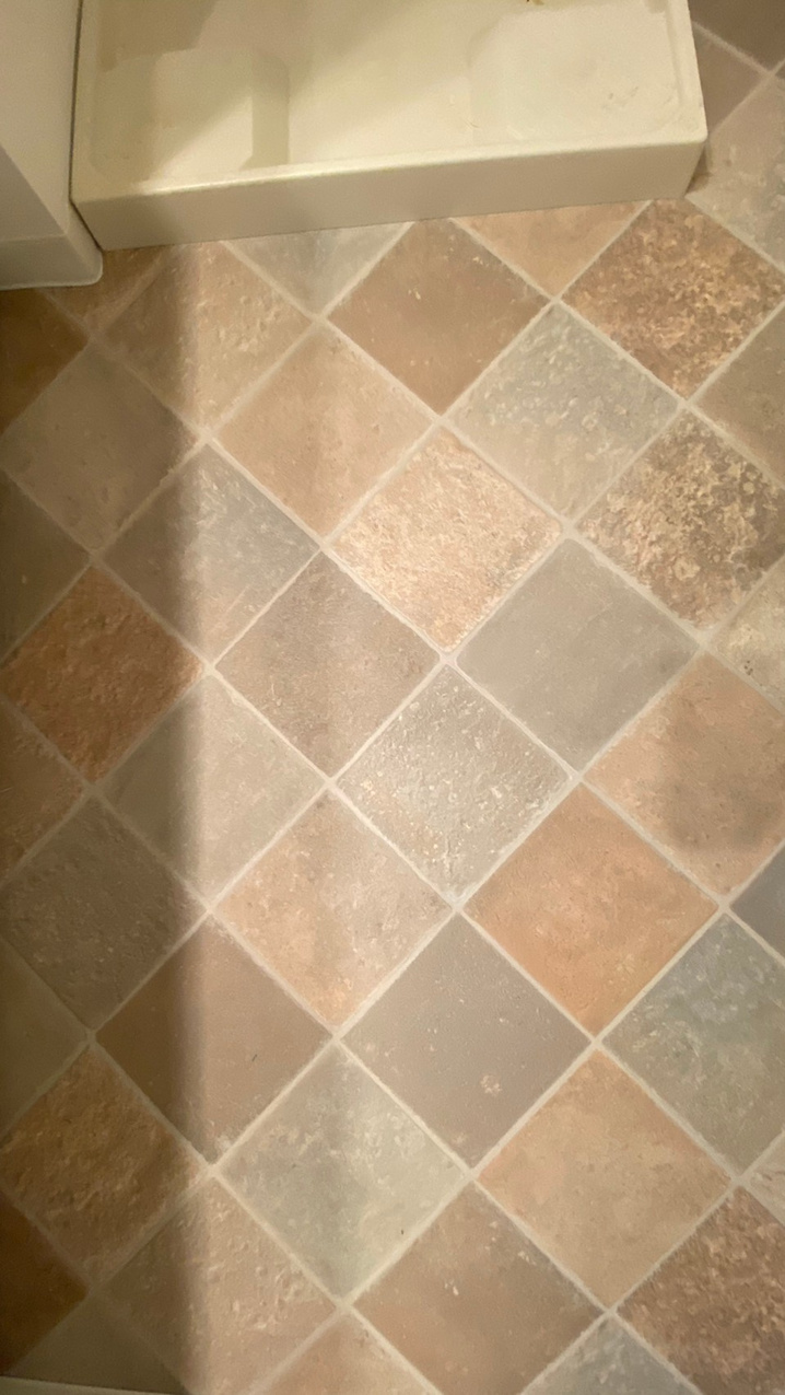 はじめはちょっとジャブ打ちで、洗面所のクッションフロアです!