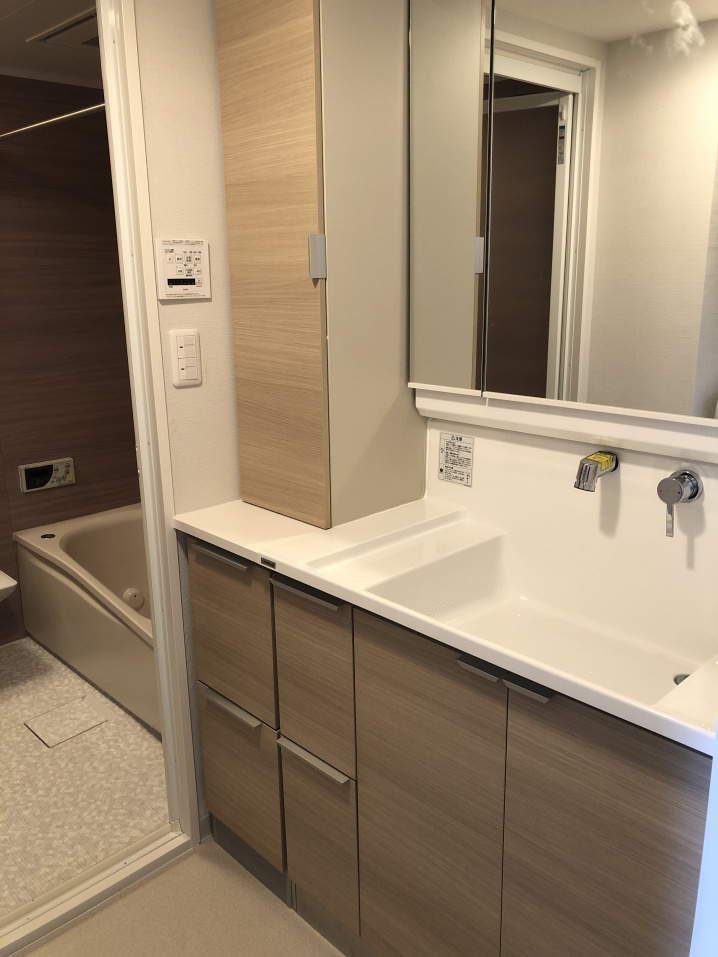 収納部分が鏡の後ろにある分、鏡を広く使うこともできますね!