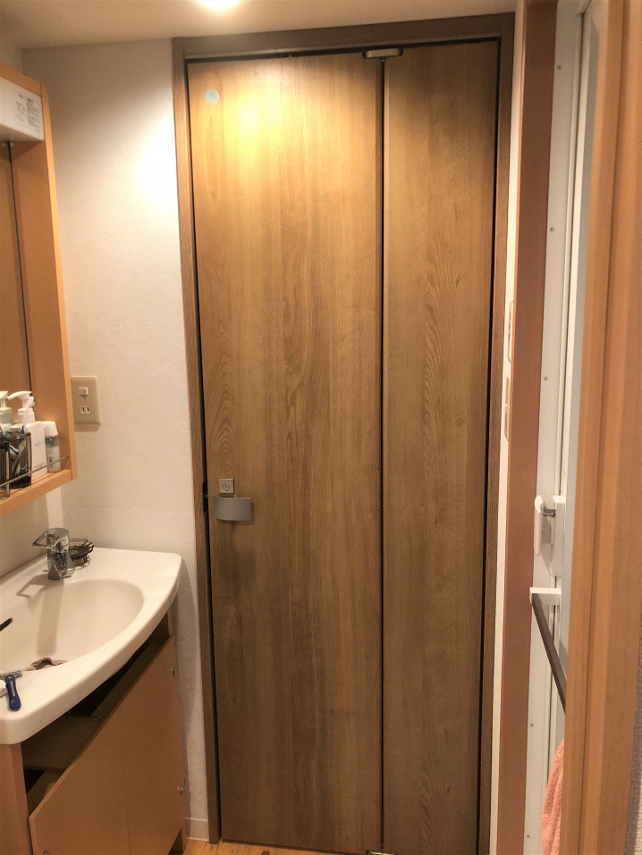 本日は、トイレのドアを折れ戸にて施工した事例をご紹介いたします!
