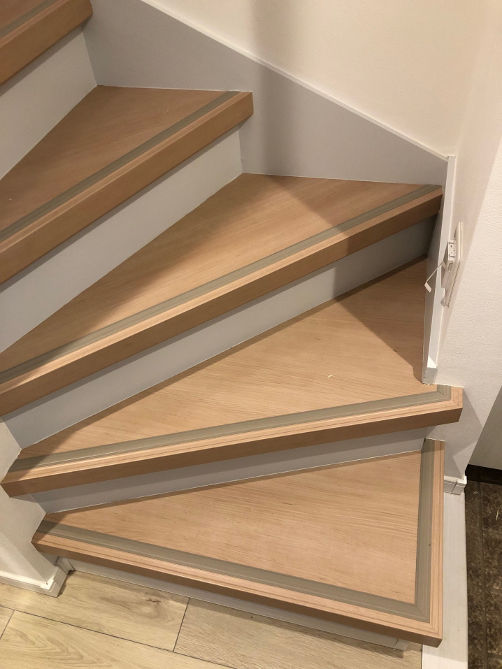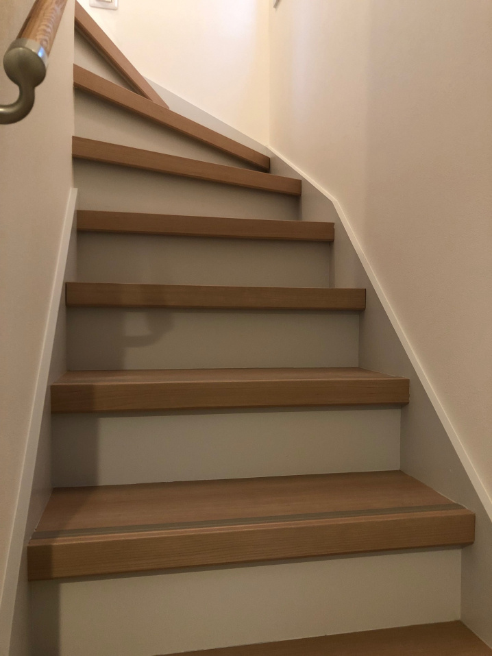 こちら、階段の木目の部分が今回上貼りした箇所です!