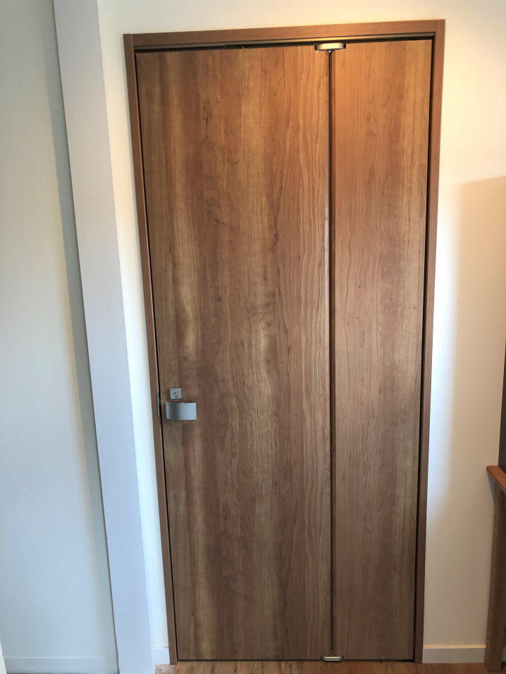 折れ戸にすることで、扉を開けた際に他の居住スペースやユニットを制限することなく使えるようになりました!