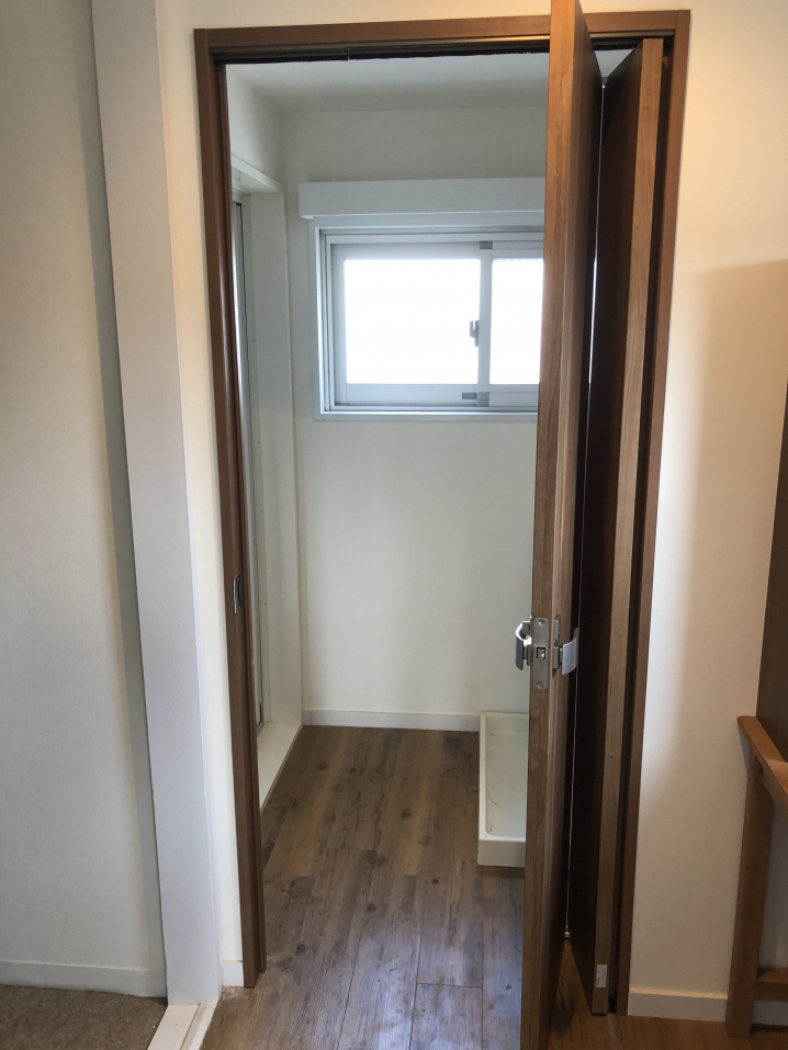 ドア奥の右端に見えるのは洗濯機置き場。もともとは洗面台があったとのこと。