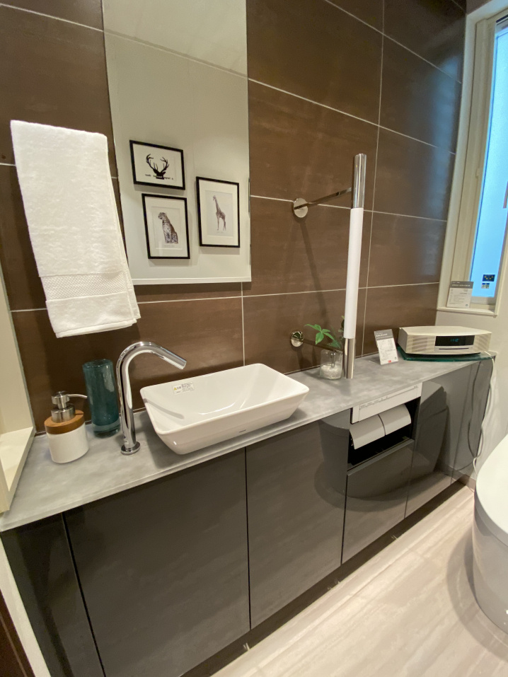 キッチンもデスクもおしゃれすぎますね。もはや水回りも家具ですね。